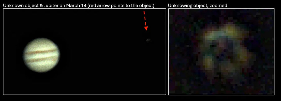 The unknown object near Jupiter, captured on March 14, 2026 at 20:30 UTC, does not match the criteria of known objects: