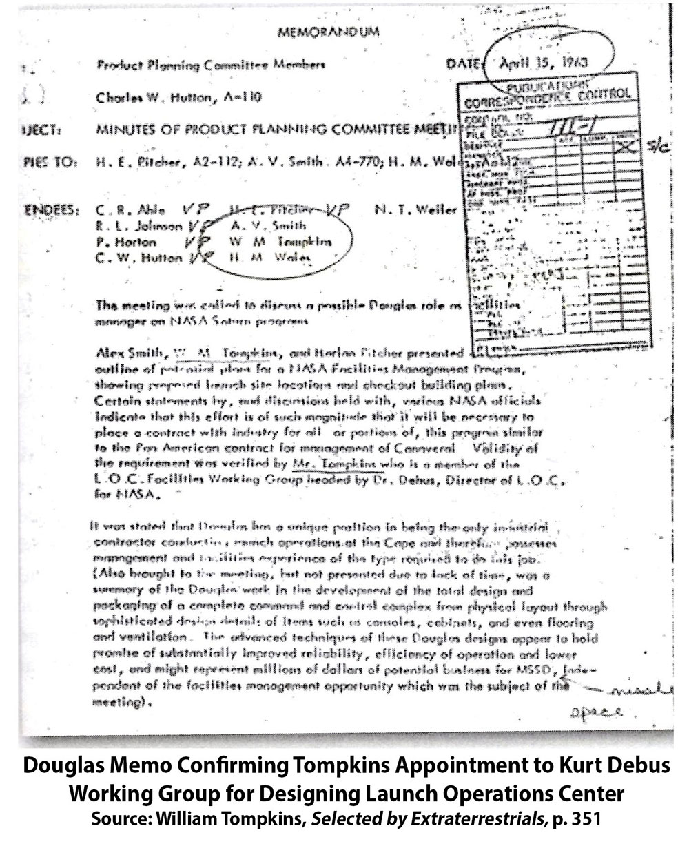 Unlike other secret space program witnesses, Tompkins has many official documents substantiating his claims that have been authenticated by document expert Dr. Robert Wood, who also being an ex-Douglas Aircraft employee, was also able to verify his employment there as well. Dr. Wood was so impressed by his credentials that he helped Tompkins in the editing of his book.